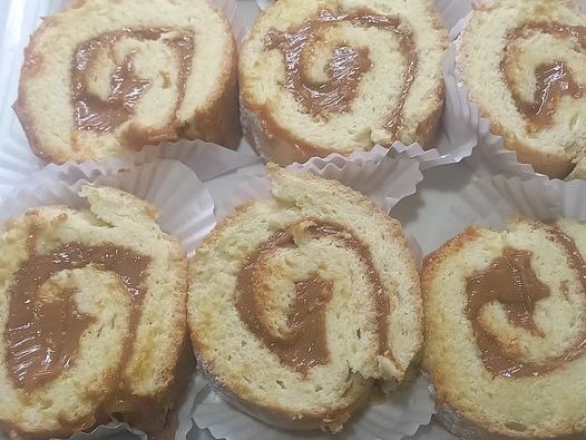 Brazo de reina: un rollo de bizcocho esponjoso, relleno con dulce de leche o crema, y cubierto con una fina capa de azúcar glas. Cada rebanada revela un espiral de sabor suave y dulce, ideal para compartir en cualquier ocasión especial.
